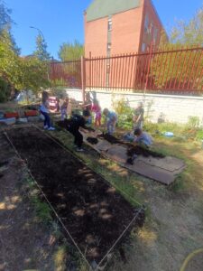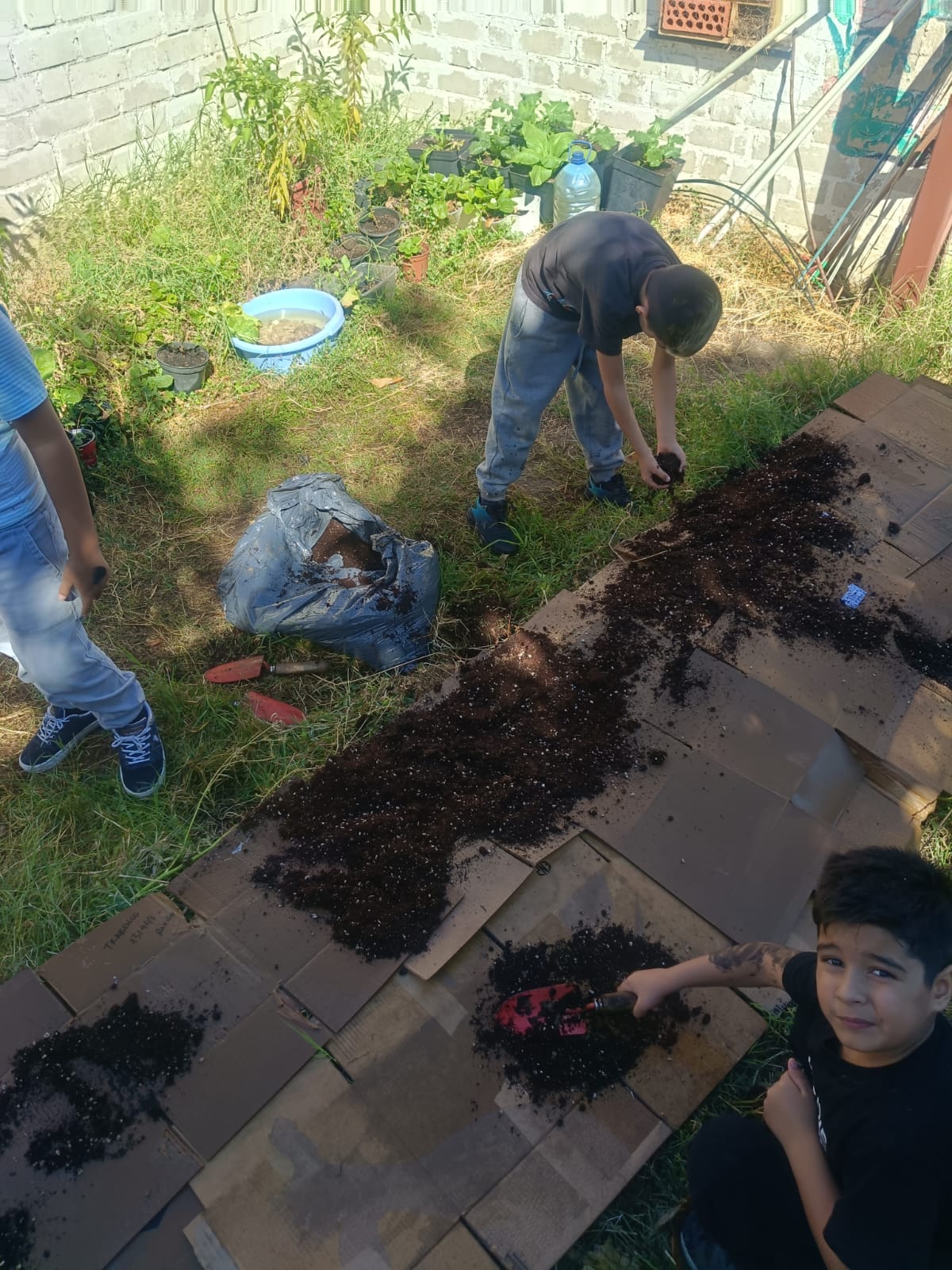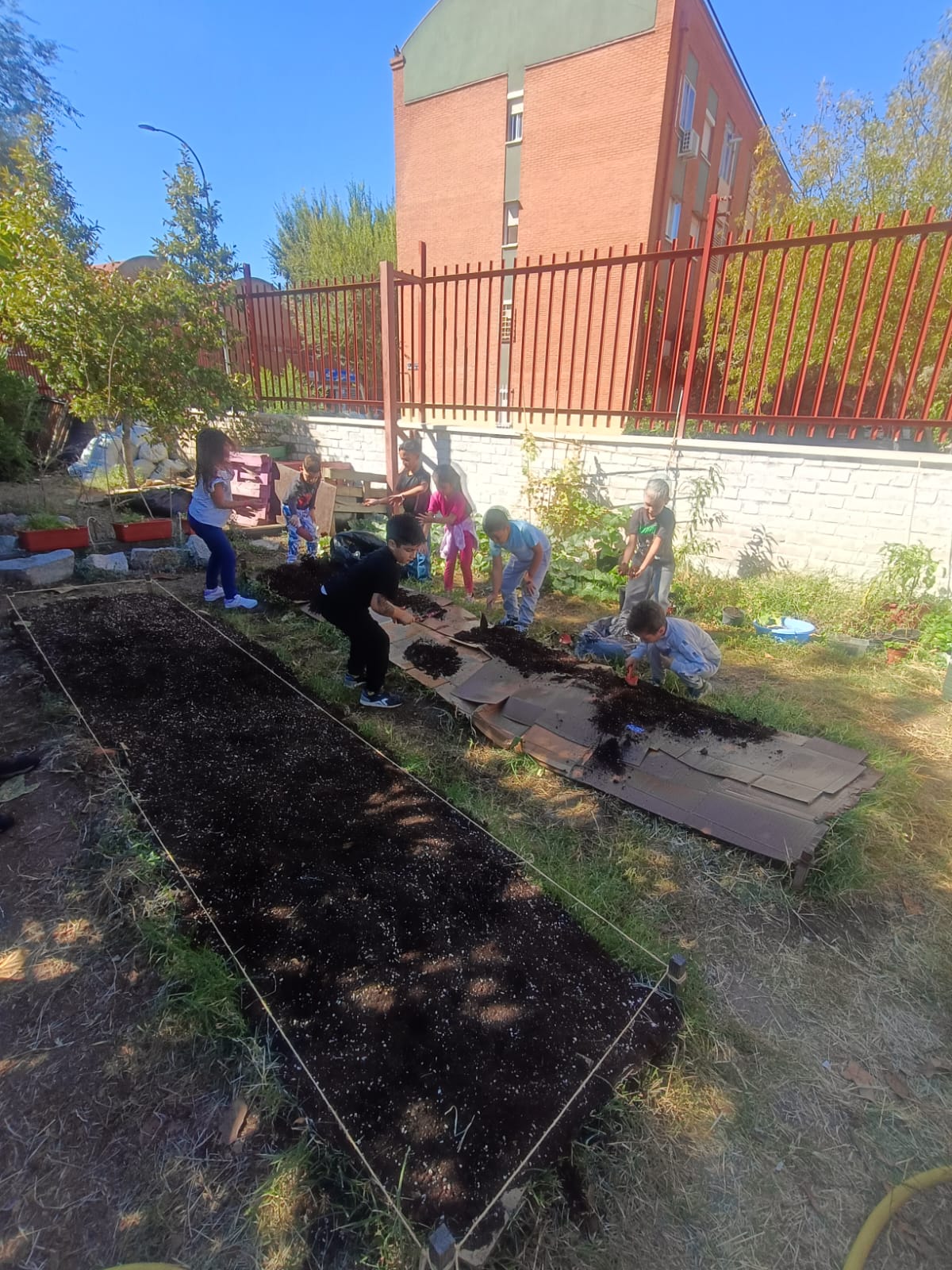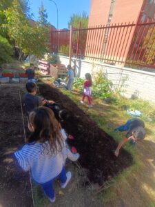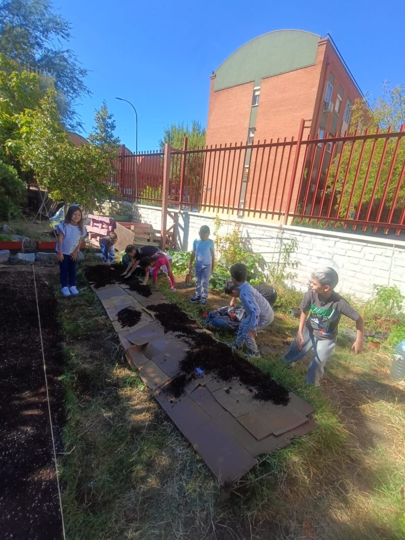 En el cole ya estamos listos para la nueva temporada. Para que nuestras plantas crezcan fuertes 💪 y sanas, preparamos el suelo con materiales naturales y sostenibles ♻️.