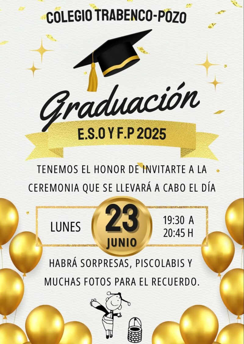 Con mucha emoción queremos anunciar que el próximo lunes 23 de junio a las 19:30h tendrá lugar la ceremonia de graduación de nuestros alumnos de 4º de ESO y Formación Profesional. 🗓️⏰