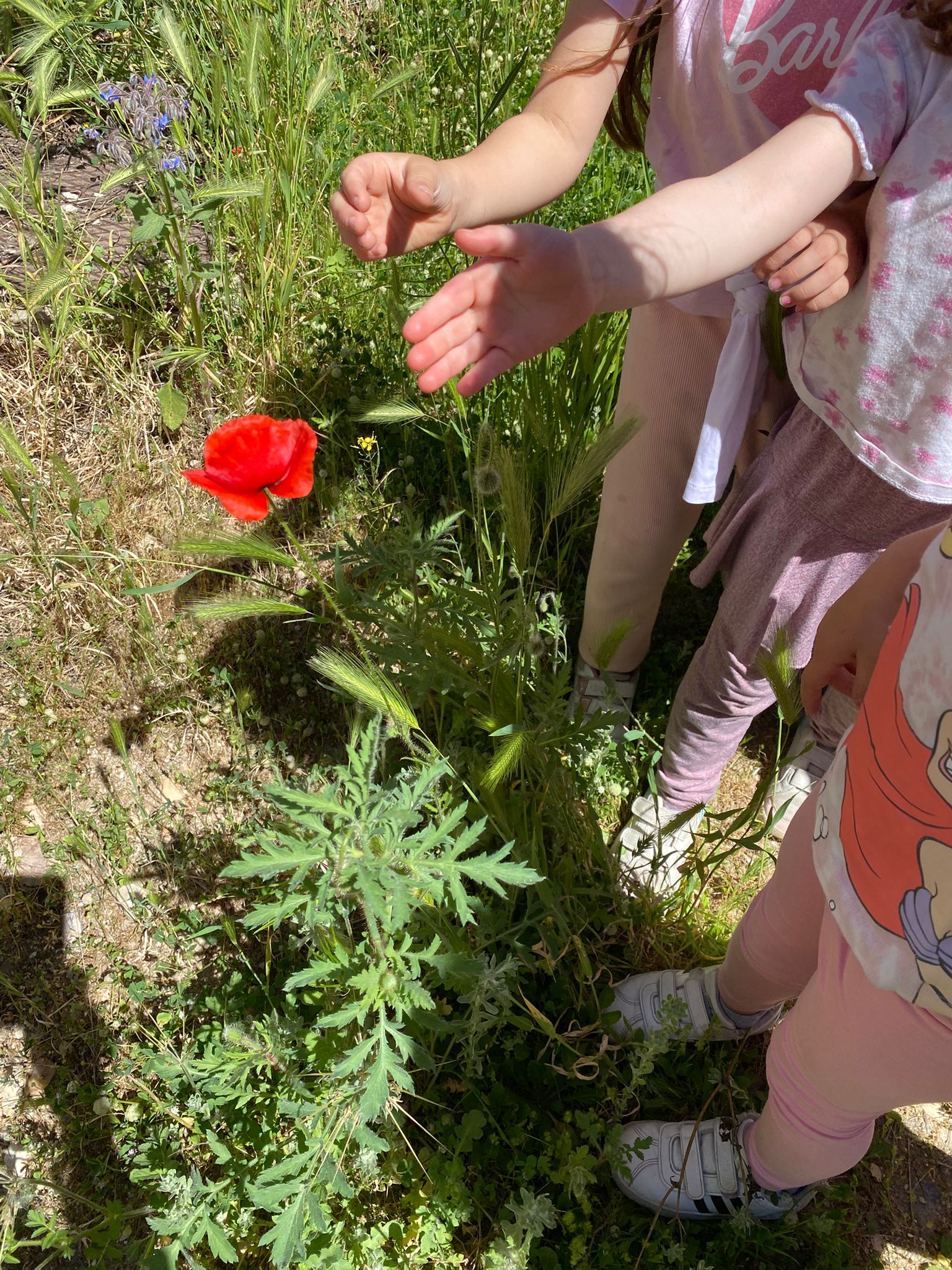 ¡La manzanilla 🌼está enorme! Y han aprendido que se cuece en agua 🚿 y la tomamos cuando nos duele la barriga.
