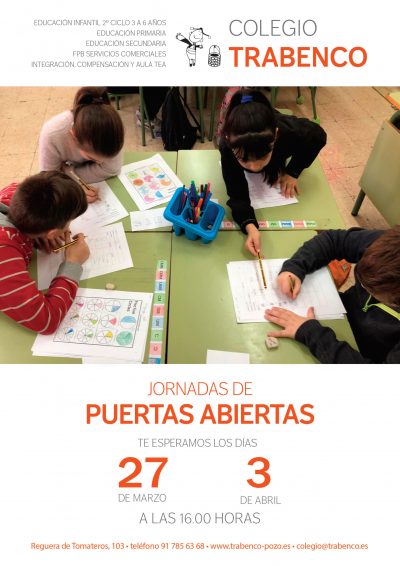 El miércoles 27 de marzo y 3 de abril, nuestro centro celebrará la Jornada de Puertas abiertas. Os enseñaremos nuestras instalaciones y os contaremos cómo trabajamos. ¡Os esperamos!
