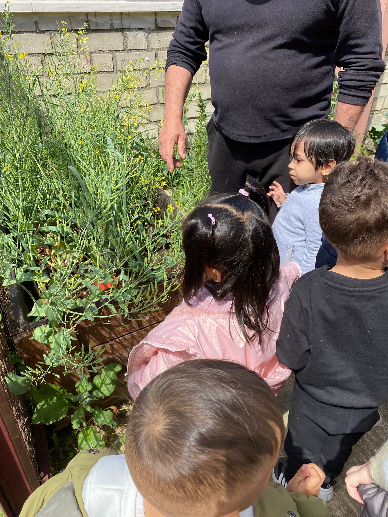 Los niños 👦 y niñas 🧒 de 3 años han estado visitando el huerto en el que plantaron guisantes 🫛. ¡Como han crecido!.