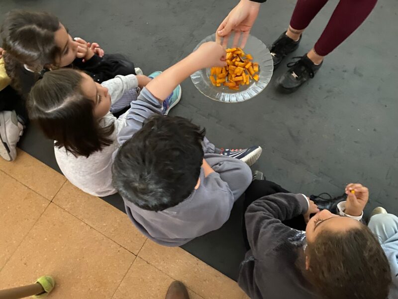 Con ayuda de Antonio 👨🏻🌾, hemos hecho un taller de cocina 🧑🏻🍳 en la Etapa de Infantil 👶para probar como sabe 👅 la calabaza 🎃 a la plancha🍱