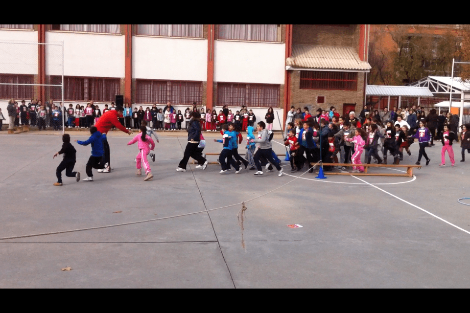 Para recaudar fondos los alumnos y alumnas del colegio participaron en una carrera en la que por cada vuelta que daban al circuito, el “patrocinador” que habían buscado – madre, padre, tío, tía, abuela, abuelo…- daba 0,50 € .