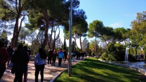 El encuentro forma parte de las actividades programadas durante la “Semana contra el Cambio Climático”, en el barrio de Entrevías-El Pozo. Nos encontramos en el Parque de la Ronda del Sur con otros centros escolares de la zona y con colectivos del barrio. Allí contamos lo que hacemos en nuestro colegio para clasificar los desechos y para intentar reducir el uso de plásticos.
