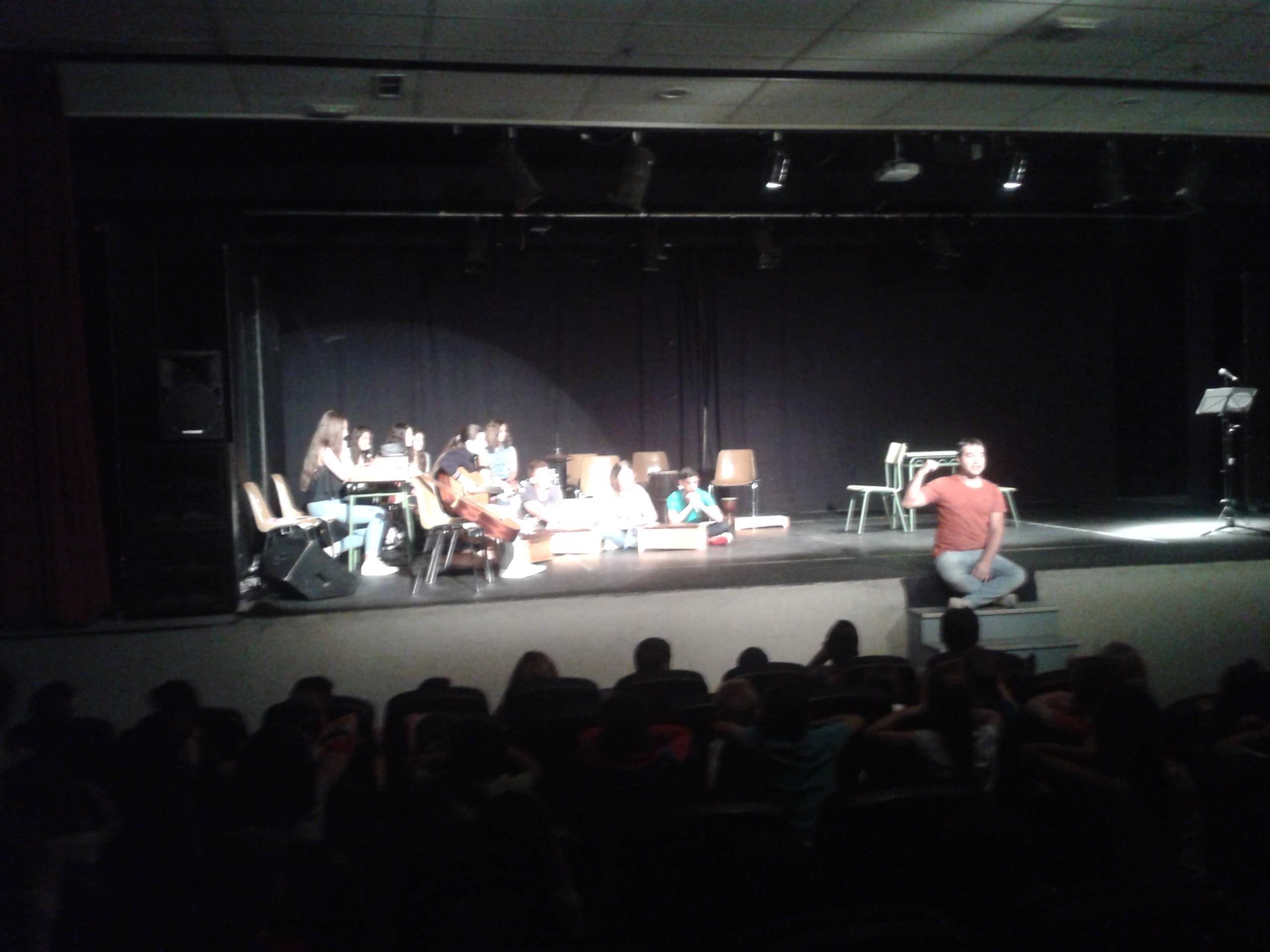 El miércoles 18 de junio, el primer ciclo de Primaria y Educación Infantil, fuimos al Centro Cívico del Pozo para ver un maravillosos espectáculo musical a cargo de los alumnos y alumnas de 3º de la ESO del Instituto de Velilla de San Antonio. Nos ofrecieron dos cuentos musicales, ¿A qué sabe la luna?, y otro sobre un rey africano. Los alumnos/as hicieron todo , los decorados, los arreglos del texto, el vestuario… y su profesor de música además de ayudarles hizo las orquestaciones. Sonaron muy bien, sin fallos. El año pasado ya estuvieron en el gimnasio del colegio y también nos gustó mucho, por lo que ya se está convirtiendo en un clásico de final de curso.