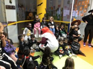 El pasado Viernes 29 los alumnos y alumnas de educación infantil celebramos Halloween por todo lo alto. Nos pintamos las caras, nos pusimos nuestras galas mas terroríficas y al grito de ¡Truco o Trato! nos comimos unas chuches. Fue un día de canciones, bailes y juegos, incluso pudimos reunirnos en nuestro ágora para poder ver a nuestros amig@s de otras clases, mientras una “carta terrorífica” nos preguntaba que tal lo habíamos pasado. Fue un día genial en el que descubrimos que las cosas que a veces nos dan un poco de miedo pueden ser muy divertidas.