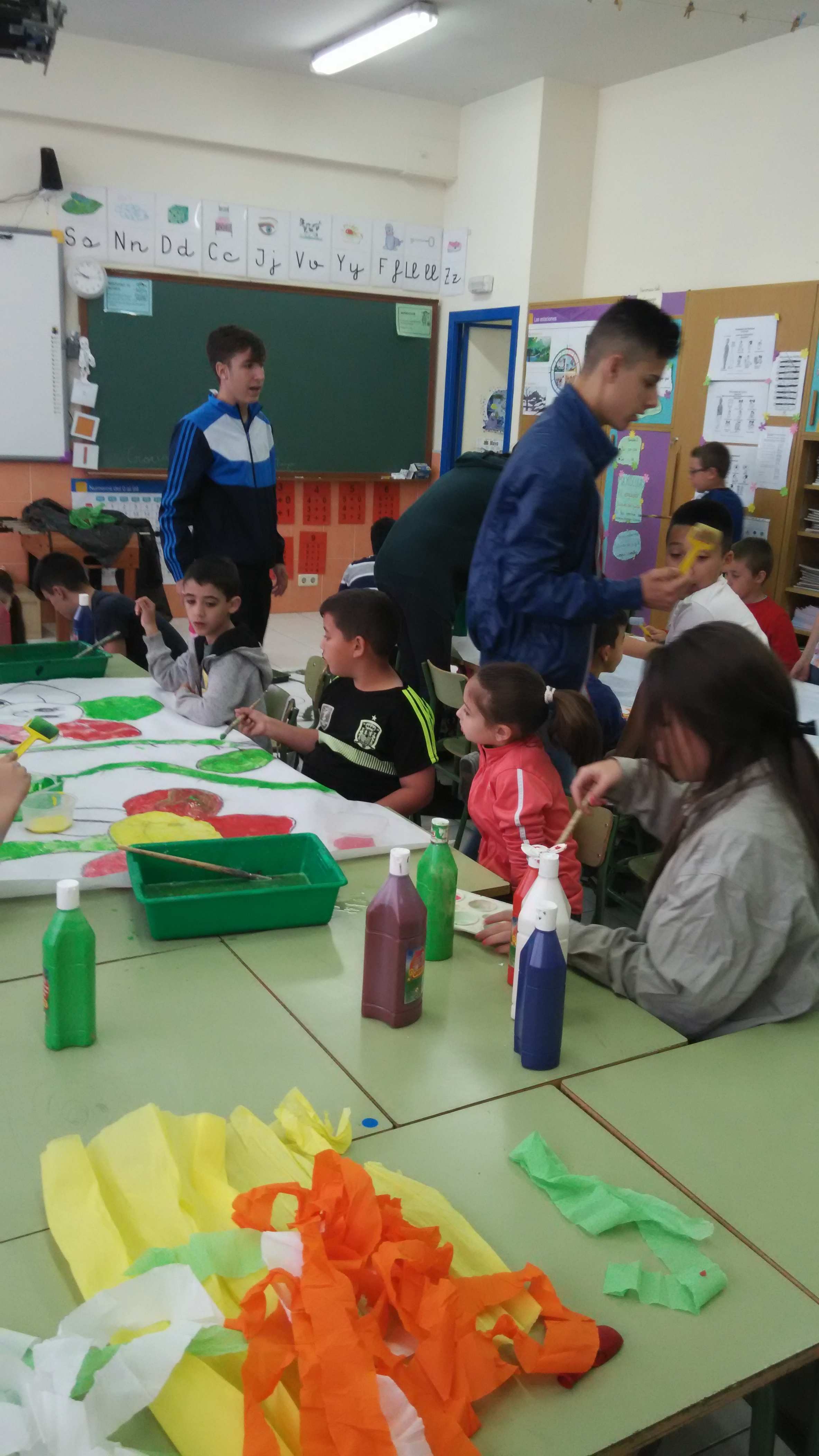 En 2º primaria estamos muy contentos y contentas ha llegado la primavera y nuestros compas de 4º de ESO y Raúl han venido a trabajar con nosotras en el taller de plástica.