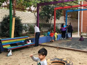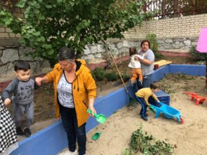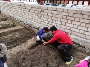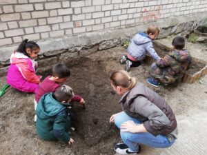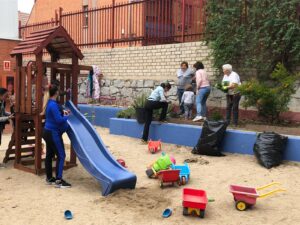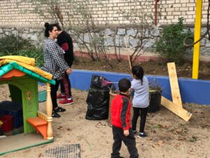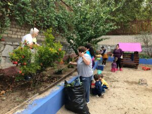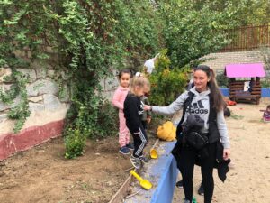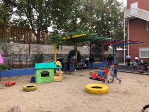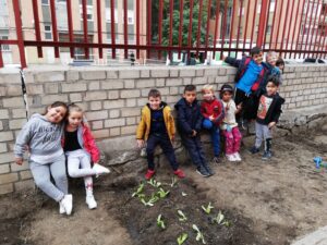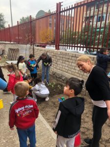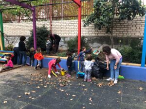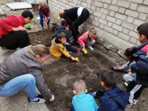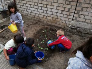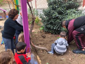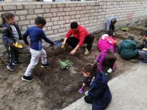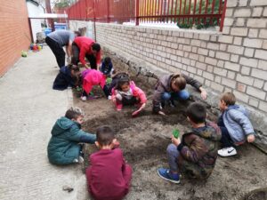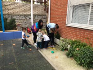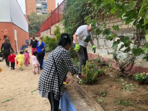 Terminamos de 12 a 14h, cada una con su grupo, plantando en el huerto los de 5 años, 3 y 4 en el jardín del patio pusimos arbustos, plantas con flores, limpiamos y jugamos.
