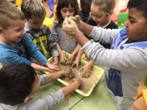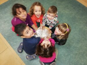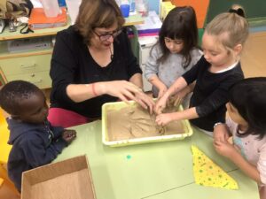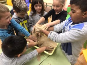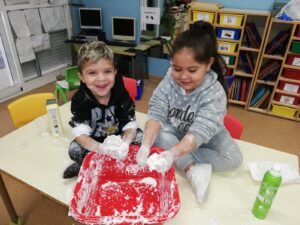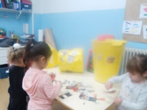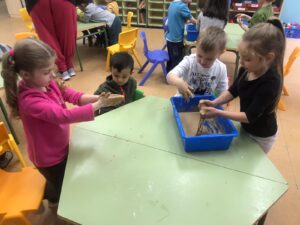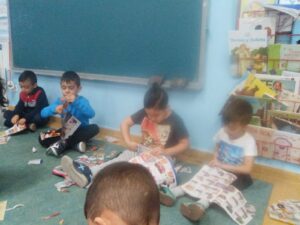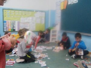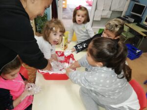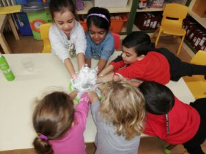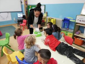 En infantil nos planteamos hacer talleres mezclando los tres grupos: naranjas, 3 años; amarillos, 4 años y verdes, 5 años.