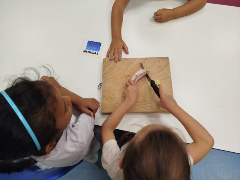 🧼🙌 Nos hemos lavado las manos, hemos lavado las hortalizas 🥕🥒 y, entre todas y todos, las hemos cortado en rodajas 🔪.