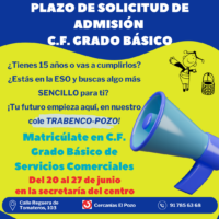 PLAZO DE ADMISIÓN SOLICITUDES C.F. GRADO BÁSICO DE SERVICIOS COMERCIALES