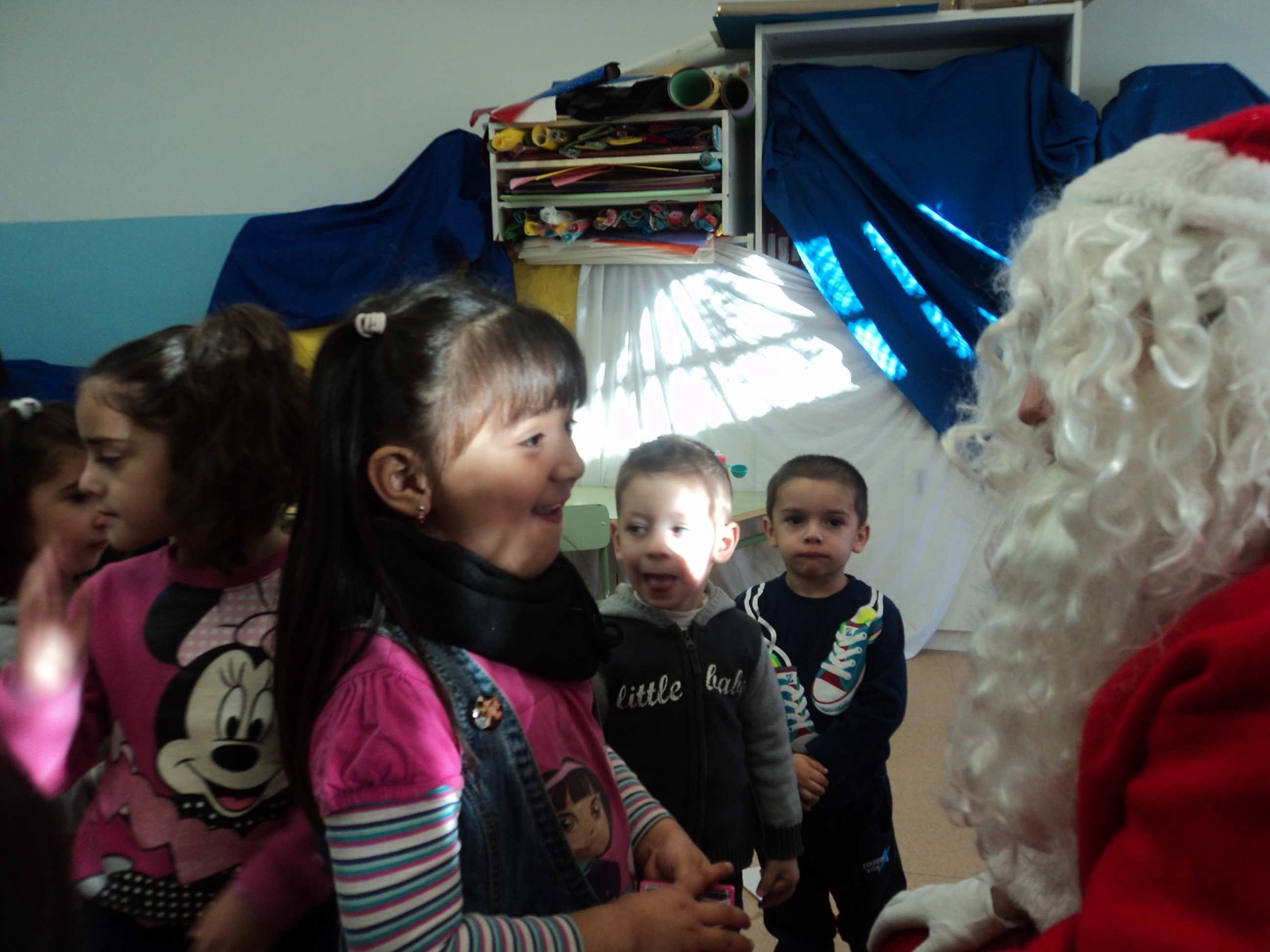 Una vez más, como en años anteriores, Papá Nöel nos ha visitado. Los niños y niñas de infantil le escribimos una carta, él nos contestó que vendría el viernes 20, último día de clase y que nos traería un regalo por lo bien que se habían portado. Nos trajo un libro para pintar, una lupa, rotuladores y una pandereta y a los /as profesores/as una bonita lámpara de vela. Luego hicimos una fiesta donde comimos, bebimos y bailamos mucho, al final juagmos un rato en el patio y nos fuimos a casa ¡HASTA EL AÑO QUE VIENE¡
