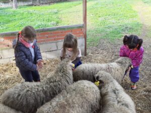 El grupo de 3 años fue a visitar y dar de comer a los animales: ovejas, gallinas y conejos. Luego estuvieron en el bosque.