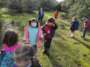 El grupo de 5 años dio una largo paseo por el bosque y no se fue sin visitar los corrales.