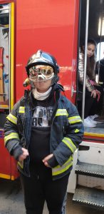 Nos explicaron que para ser bombero hay que prepararse muy bien, hay que estudiar y también hay que preparar unas pruebas físicas como subir una cuerda, sentados desde el suelo utilizando solo las manos, nos hicieron una demostración y nos dejaron intentarlo, pero es muy difícil. También nos enseñaron los coches que utilizan , nos sentamos en ellos y nos explicaron lo que tenía que hacer cada uno, algunos se probaron sus chaquetas y el casco, eran muy chulos, pero pesaban mucho y olían un poso a humo (claro, como acababan de venir de apagar un incendio). Nos contaron que cuando un bombero tiene más de 54 años, se quedan a trabajar en puestos de control, paran el tráfico de la calle para que salga el camión, avisan a los bomberos por megafonía …